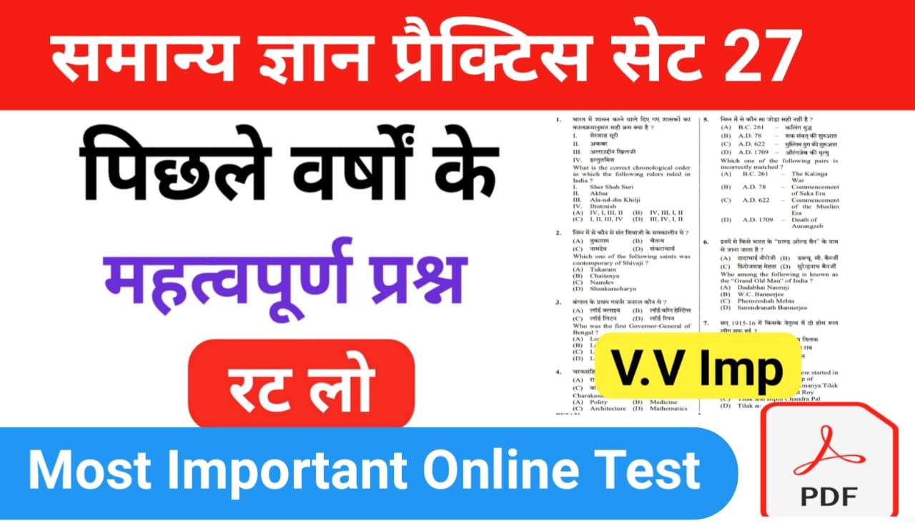 समान्य ज्ञान ( GK Questions Quiz ) प्रैक्टिस सेट ( 27 ) 25+ महत्वपूर्ण प्रश्नो का Online Test | For RRB, NTPC, SSC, UPSC, CETET, UPTET,SSC GD, BANK, & All Exams