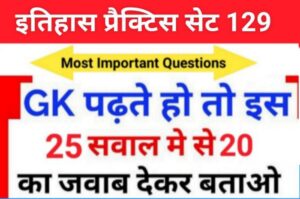 इतिहास प्रैक्टिस सेट (129) 25+ महत्वपूर्ण प्रश्नो का Online Test | For RRB, SSC, UPSC, CETET, UPTET,SSC GD, BANK, & All Exams